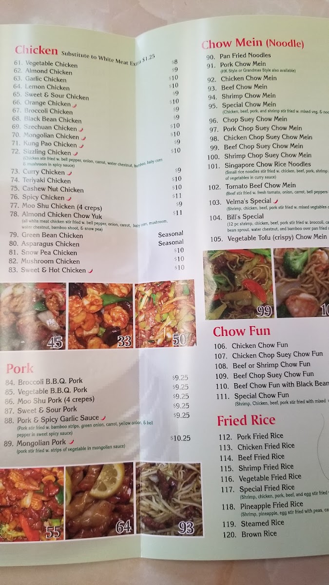 all white meat chicken stir fried with bell pepper, onion, carrot, baby corn, mushroom, water chestnut, bamboo shoot, & snow pea